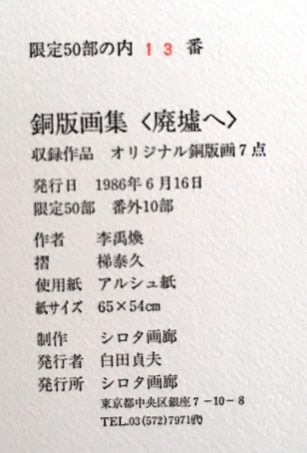 李禹煥の「廃墟へ」銅版画集の買取相談をいただきました