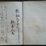 柿本人麻呂、藤原敏行、紀友則など平安時代に歌人の歌が写された三十六人歌帖。その写本は、だれが写したか、年代もが書かれていなく不明ですが、装丁、字体から江戸時代で間違いないかと思います。巻物の方は、装丁、字からするとおそらく鎌倉時代の物のようです。この2点は和歌山県から宅配にて買取させて頂きました。何でもご依頼人のお父さんが骨董屋さんをやっていて、その時に仕入れて大切に残しておいた物だそうです。お値段にもご納得頂き買入れさせて頂きました。お譲り頂きありがとうございました。
