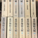 講談社から出版された、東洋陶磁大観を店頭にて買取させて頂きました。以前と比べ中国美術の下落とともに中国美術関係の古書も随分値段が落ち着いてきました。それと共にこの東洋陶磁大鑑も落ち着いてきました。それでも2重箱に入った状態のいい東洋陶磁大観全12巻揃いは現在買取金額は10万円以上と高額にて買い取りしております。今回お売り頂きました本は2重箱欠で、随分と箱の背がヤケていて色落ちしてましたが、頑張って高価買い取りさせていただきました。